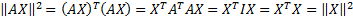 Observation: Multiplying a vector X by an orthogonal matrix A has the effect of rotating or reflecting the vector. Thus we can think of X as point in n-space which is transformed into the point AX in n-space. Note that the distance between the point X and the origin (i.e. the length of vector X) is the same as the distance between AX and the origin (i.e. the length of vector AX), which can be seen from