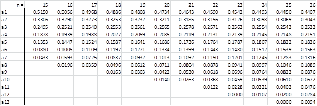 Correction: The a13 value for n = 49 should be 0.0919 instead of 0.9190.
