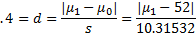 We begin by calculating the power for the one-tailed test where the null hypothesis is H0: μ ≥ 52; later we’ll look at the power of the two-tailed test.