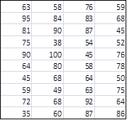 Example 2: A school board wanted to see if reading test scores have changed in the past 30 years by testing a random sample of 40 students to see whether there is a significant change from the average score of 78 thirty years ago. The scores of the sample are as follows: