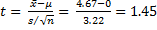 Since p-value = TDIST(t, df, 1) = TDIST(1.45, 11, 1) = .088 > .05 = α, the null hypothesis is not rejected. This means there is an 8.8% probability of achieving a value for t this high assuming that the null hypothesis is true, and since 8.8% > 5% we can’t reject the null hypothesis.