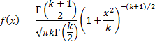 Definition 1: The (Student’s) t distribution with k degrees of freedom, abbreviated T(k) has probability distribution function given by