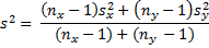Observation: s, as defined above, can be viewed as a way to pool sx and sy, and so s2 is referred to as the pooled variance. Also note that the degrees of freedom of t is the value of the denominator of s2 in the formula given in Theorem 1.