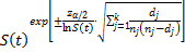 Property 2: The approximate 1−α confidence interval for S(t) for t, tk ≤ t < tk+1, is given by the formula