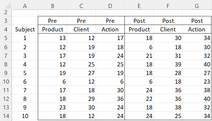 Here, Factor A is the Time factor with the two values Pre and Post, as shown in Figure 2.
