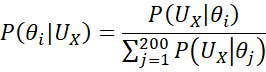 The prior for θi assumes equal likelihood, namely P(θi) = 1/200.