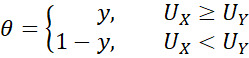 Since θY = 1 – θX, we only need to consider θX. If X is stochastically dominant then θX > .5, while if θX < .5 then Y is stochastically dominant.