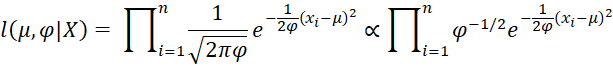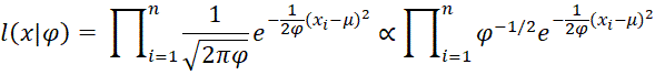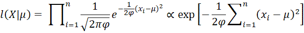Property A: If the independent sample data X = x1, …, xn follow a normal distribution with an unknown mean µ and variance φ where X|µ, φ ∼ N(µ, φ), then the likelihood function can be expressed as
