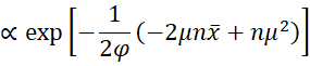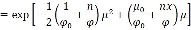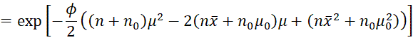 Proof: Note that in the proof the proportionality symbol ∝ is used when the previous term is multiplied by a value that doesn’t involve μ, especially when a term not involving µ is added or removed from the expression inside exp.