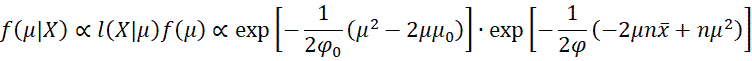 Property 1: If the independent sample data X = x1, …, xn follows a normal distribution with a known variance φ and unknown mean µ where X|µ ∼ N(µ, φ) and the prior distribution is µ ∼ N(µ0, φ0), then the posterior µ|X ∼ N(µ1, φ1) where