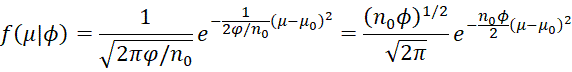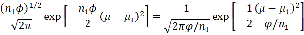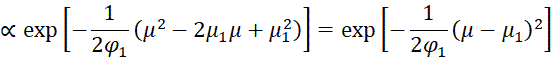 which is the pdf for N(μ1, φ/n1), i.e. f(μ|φ, X)