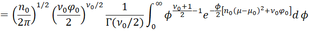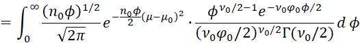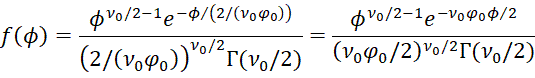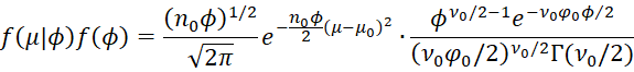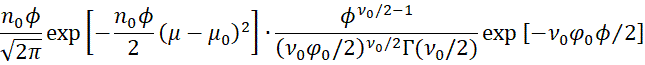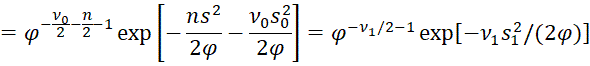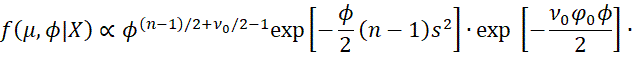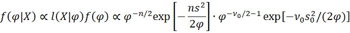 Property 2: If the independent sample data X = x1, …, xn follow a normal distribution with an unknown variance φ and a known mean µ where X|φ ∼ N(µ, φ) and the prior distribution is φ ∼ Scaled-Inv-χ2(ν, s02) with scale parameter s02 and degrees of freedom ν1 > 0, then the posterior φ|X ∼ Scaled-Inv-χ2(ν1, s12) where
