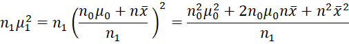 Here, we have removed multipliers not involving μ, ϕ from the fourth term in the product and added a multiplier not involving μ, ϕ to the second term. Reordering the terms and using the fact that n1 = n0 + n, yields the following: