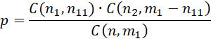 The one-sided Fisher’s exact test uses a sum of expressions of the following form