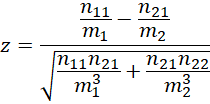 =2*(ASIN(SQRT(n11/m1))-ASIN(SQRT(n21/m2)))
