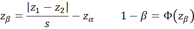 Example 1: Find the power for a two-sample correlation test for null hypothesis ρ1 = ρ2 based on samples of sizes 50 and 60 with corresponding correlation coefficients .65 and .85.