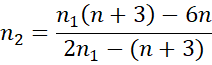 assuming that n is the harmonic mean of n1 and n2 where n is as described above.