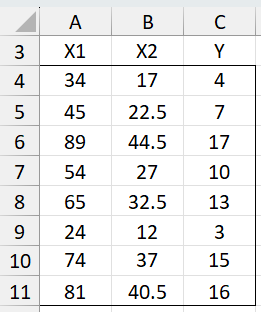 For example, in Figure 1, X1 is double X2. Thus XTXÂ is singular. Excel detects this and creates a regression model equivalent to that obtained by simply eliminating column X2.