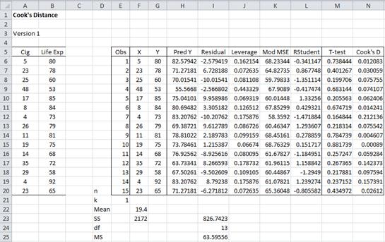 Excel worksheet which performs a test for outliers and influencers.