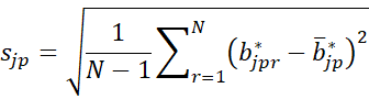 We can use the same two approaches to create confidence intervals for the individual regression coefficients. Using either approach, calculate the N bootstrap k × 1 coefficient matrices B*1, …, B*N where each B*r is a k × m coefficient matrix. The bootstrap standard error for each element βjp in β can be estimated by