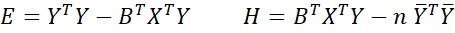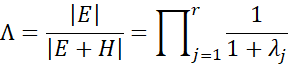 In the following |A| is the determinant of the square matrix A, and λ1 ≥ λ2 ≥ …. ≥ λr are the eigenvalues of E-1H (or HE-1) with r = min(k,m).