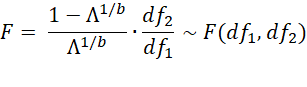 This is the same test used for one-way MANOVA where in that case p = k, h = m–1, and e = n–m.
