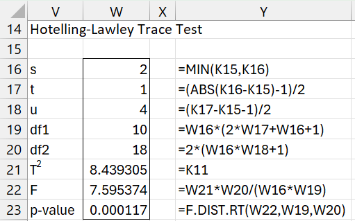 You can obtain more information about the critical values for these statistics at Real Statistics Support for Multivariate Regression.