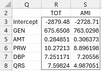 MRegCoeff(Rx, Ry, head): returns a k × m array with the coefficients of the multivariate regression model defined by the X data in Rx and Y data in Ry. Rx has k columns, Ry has m columns, and Rx and Ry have the same number of rows.
