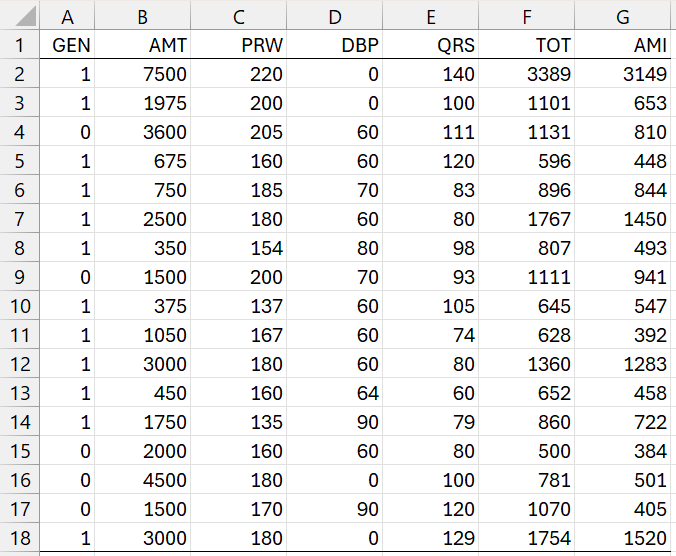 Once again, we use the data in Figure 1, where the first 5 columns contain the data for the independent variables and the last 2 columns contain the data for the dependent variables.