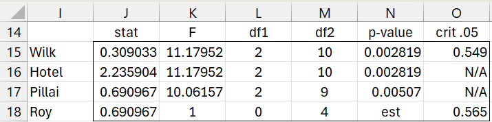 WilkCRIT(p, h, e) = critical value for Wilk’s test based on the p, h, and e parameters