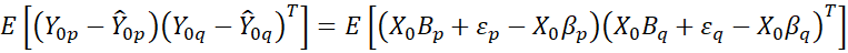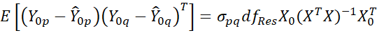 Definition 1: Suppose we have a multivariate regression model with coefficients B built from the training data in in the n × k matrix X and n × m matrix Y. Further, suppose we have a 1 × (k+1) row vector X0 = [1, x1, …, xk]. Then the prediction at X0 is the 1 × m vector Ŷ0 where