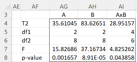 Both the A and B factors have 3 levels. Thus, the transformation matrix C is as shown on the left side of Figure 2.