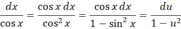 When x = 0, u = sin 0 = 0, and when x = π/4, u = sin π/4 = √2/2. But