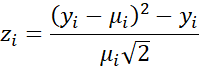 The score test can be used to determine whether the dispersion assumption (mean = variance) for Poisson regression is being violated. To perform this test, we first calculate the values: