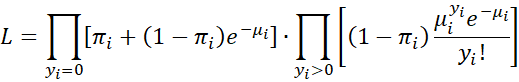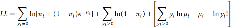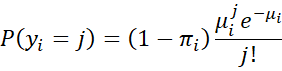 based on a mixture of Poisson regression and logistic regression models with coefficients β1, …, βk and γ1, …, γm, respectively. The regressors xij for the Poisson model don’t have to be the same as those for the logistic model (represented by zij).