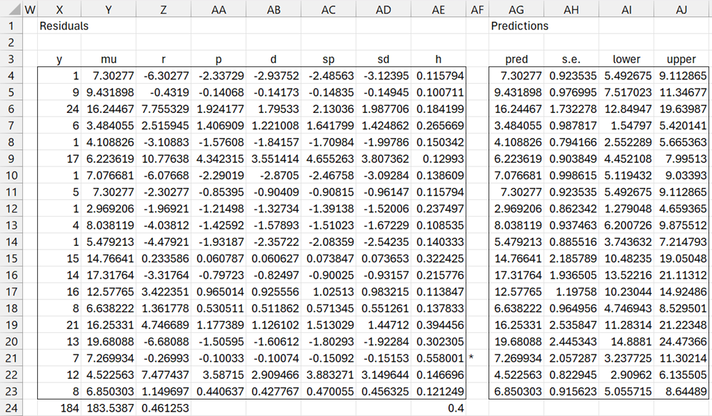 or by =PoissonHat(B2:D21,Y4:Y23).