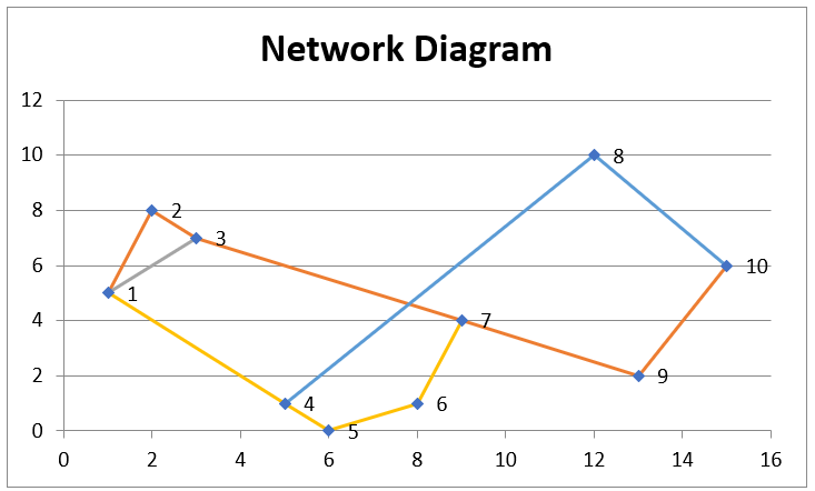 The Nodes range consists of an n × 2 cell range which specifies n two-dimensional points. The row numbers in this range are used to specify the nodes. Each row in the Edge Range consists of a pair of node numbers that are connected by an edge.