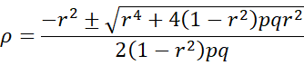 Since ρ is expected to be non-negative, we use the positive square root. Finally, with c = 2pq, we have