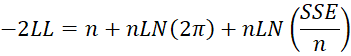 The value of -2LL is as described at the end of Calculating ARMA(p,q) Coefficients using Maximum Likelihood. Since any models of the time series have the same n + nLN(2π) portion of -2LL, and therefore of AICaug and BICaug, these values are not relevant, and so can be left out of the definitions of AIC and BIC.