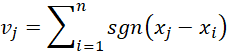Here, for example, cell C3 contains the formula =SUMPRODUCT(SIGN(B3-B$2:B$25)) and cell D3 contains the formula =C3+D2.