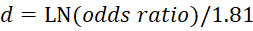 Chinn S: A simple method for converting an odds ration to effect size for use in meta-analysis. Statistics in Medicine 2000, 19:3127-3131)